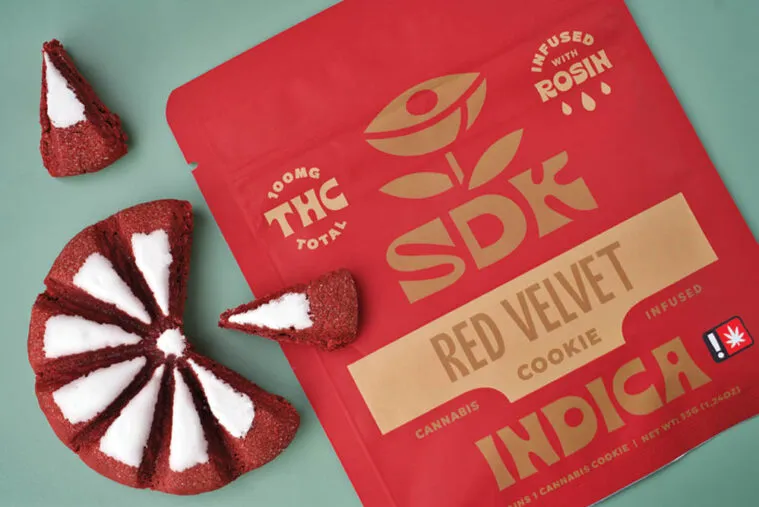 “SDK Cannabis Edibles delivers handcrafted confections that highlight premium extracts and bold flavors. Their Red Velvet cookie, infused with 100 mg of GMO hash rosin, captures the rich taste of chocolate cake with a velvety-soft texture and just the right amount of crunch. Known for both taste and potency, SDK sets the bar for edible experiences that are as enjoyable as they are effective.”
